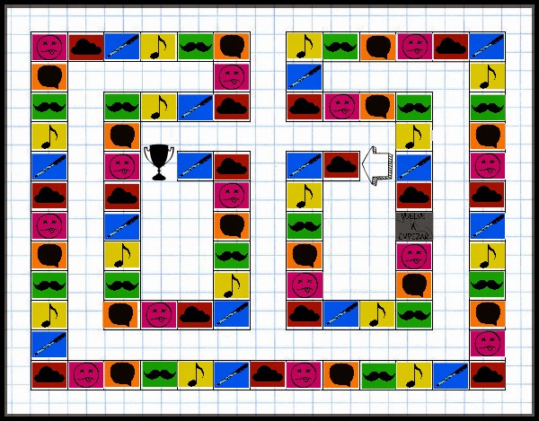 A modo de trivial, cada casilla en el tablero será de un color y cada color en las tarjetas un tema o materia diferente, pero siempre relacionada con lo que hemos trabajado recientemente en clase o estamos trabajando en este momento.