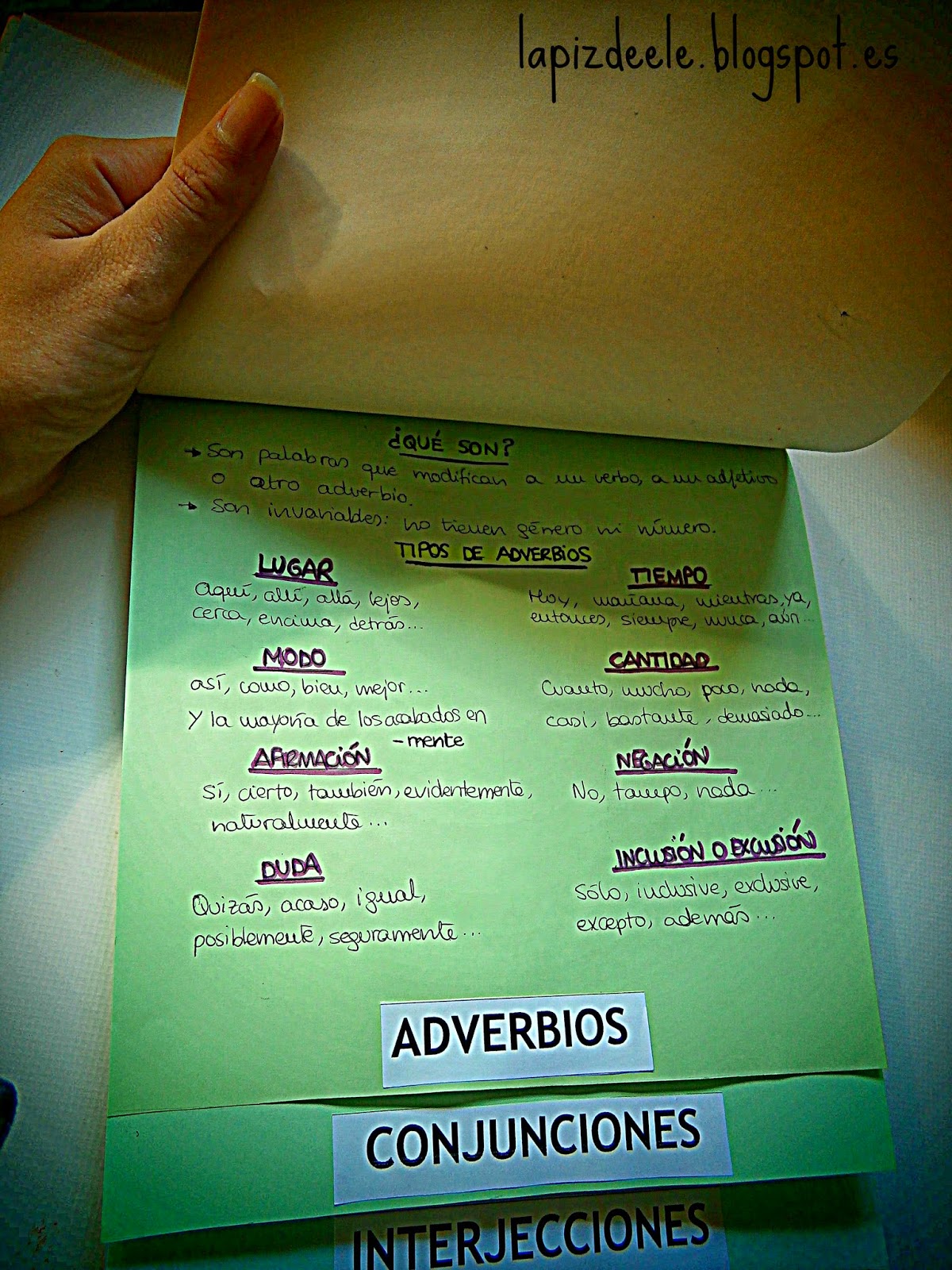Ejemplo de un flipbook de las categorías gramaticales: