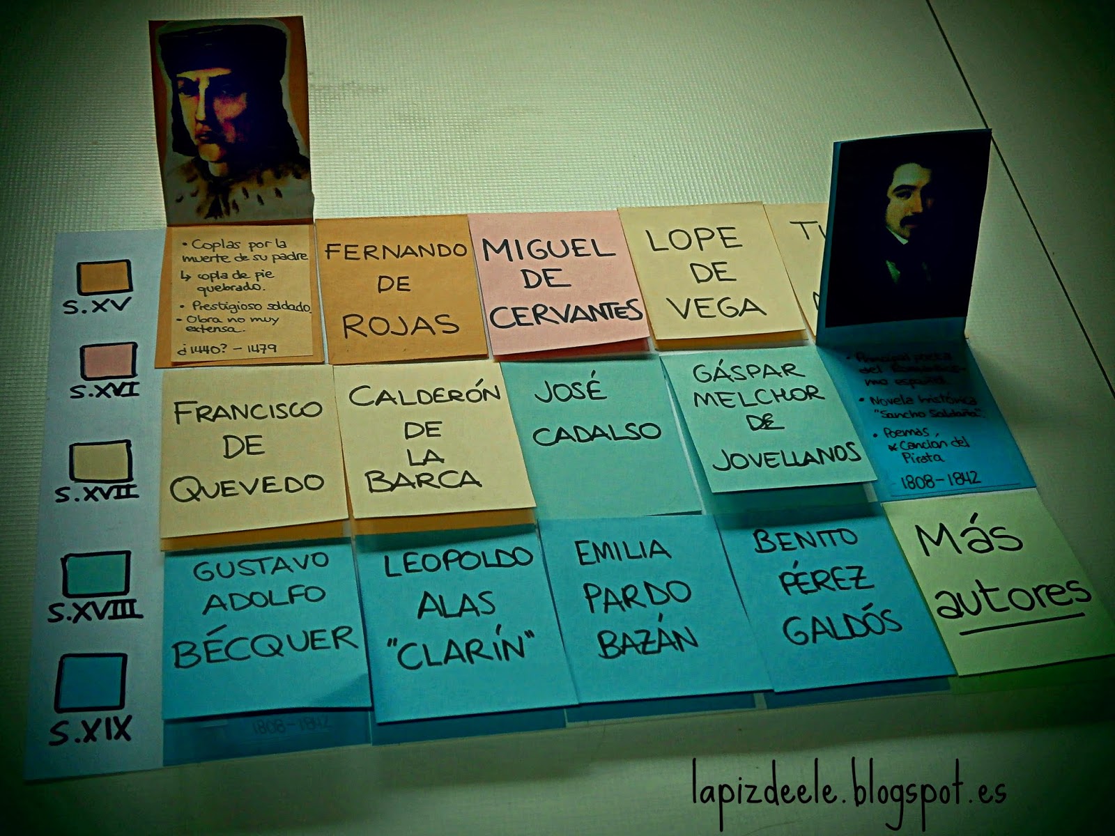 Otro tipo de chuleta original y muy esquemática para recordar los autores más relevantes de la literatura hispana del S.XV al S.XIX: