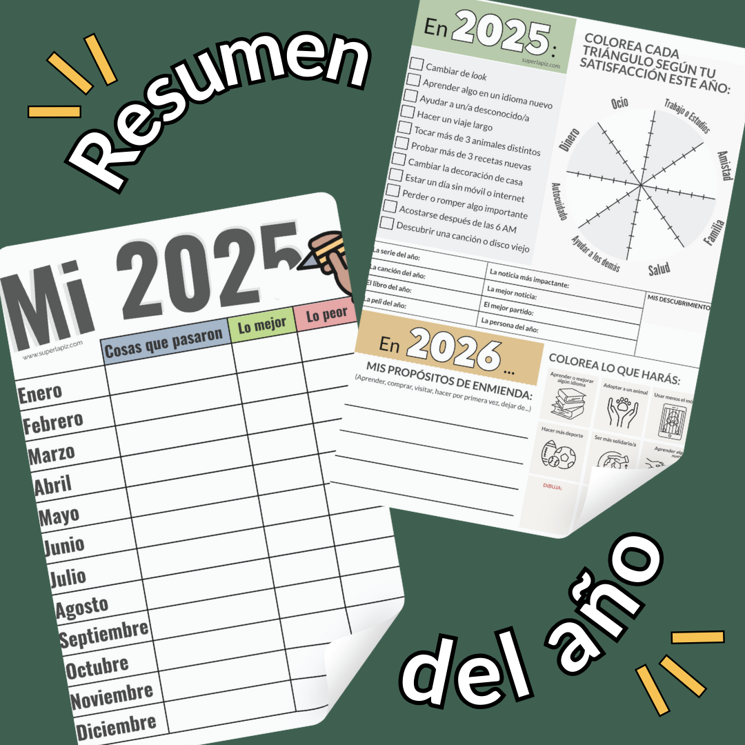 En la segunda ficha, más simple, haz memoria y cuenta lo más importante de este año que se está terminando, bien en Pretérito (si lo dominas), con palabras clave o frases en infinitivo si todavía no controlas los pasados. ¡O dibujando!